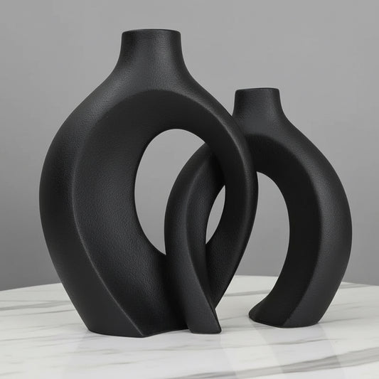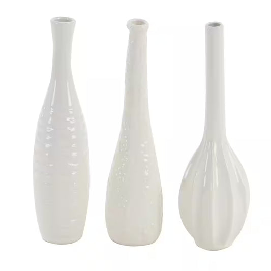 White Textured Slim Bottleneck Ceramic Vases - Set of 3